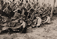 Rochester, Massachusetts. Mid - Three boys, one of 13 yrs., two of 14 yrs., picking shade-grown tobacco on Hackett Farm. The "first picking" necessitates a sitting posture. Buckland, Connecticut. Right - Six-year-old Warren Frakes. Mother said he picked 41 pounds yesterday "An I don't make him pick; he picked some last year." Has about 20 pounds in his bag. Comanche County, Oklahoma.