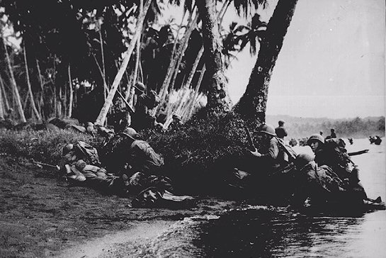 A 165th Infantry assault wave attacks Butaritari, Yellow