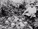 Upon completing the Bataan Death March prisoners wound up at Camp O'Donnell, a new Japanese POW camp, where many continued to suffer and die. This photo, often identified as a view of the death march itself in progress, has recently been re-identified by Bataan survivors as a later photo depicting an Allied burial detail removing bodies of fallen comrades to a mass grave located outside the POW camp. |