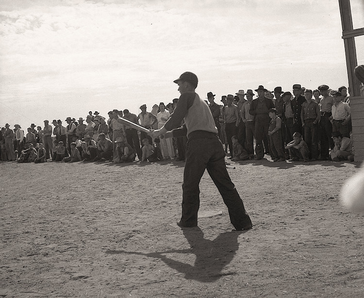 Striving for Normalcy: Ball game. Shafter migrant camp. California.